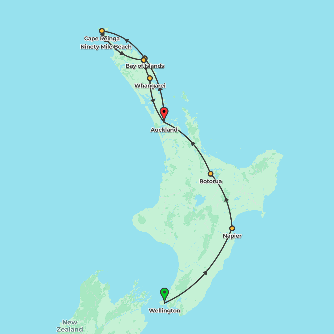 Embark on an unforgettable journey through New Zealand's North Island, exploring stunning landscapes and rich Maori culture from Auckland to Wellington.