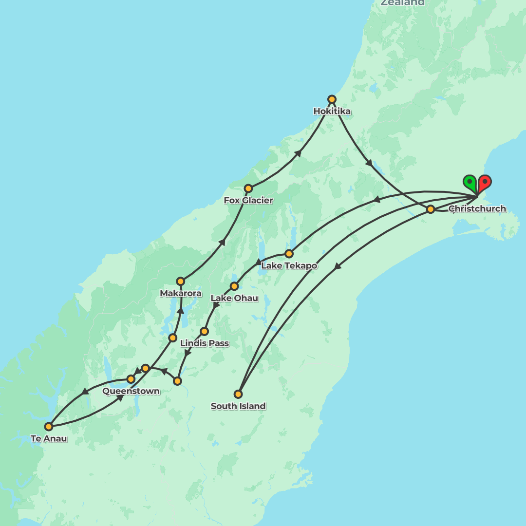 Discover New Zealand on a southbound adventure from Auckland to Christchurch, blending cultural highlights, wildlife encounters and free-time thrills across cities, lakes, volcanoes and coastlines.