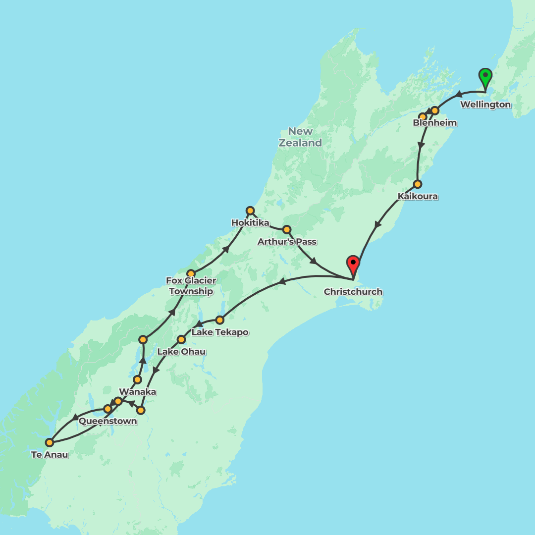 Explore New Zealand's stunning South Island on a 12-day tour from Wellington to Christchurch