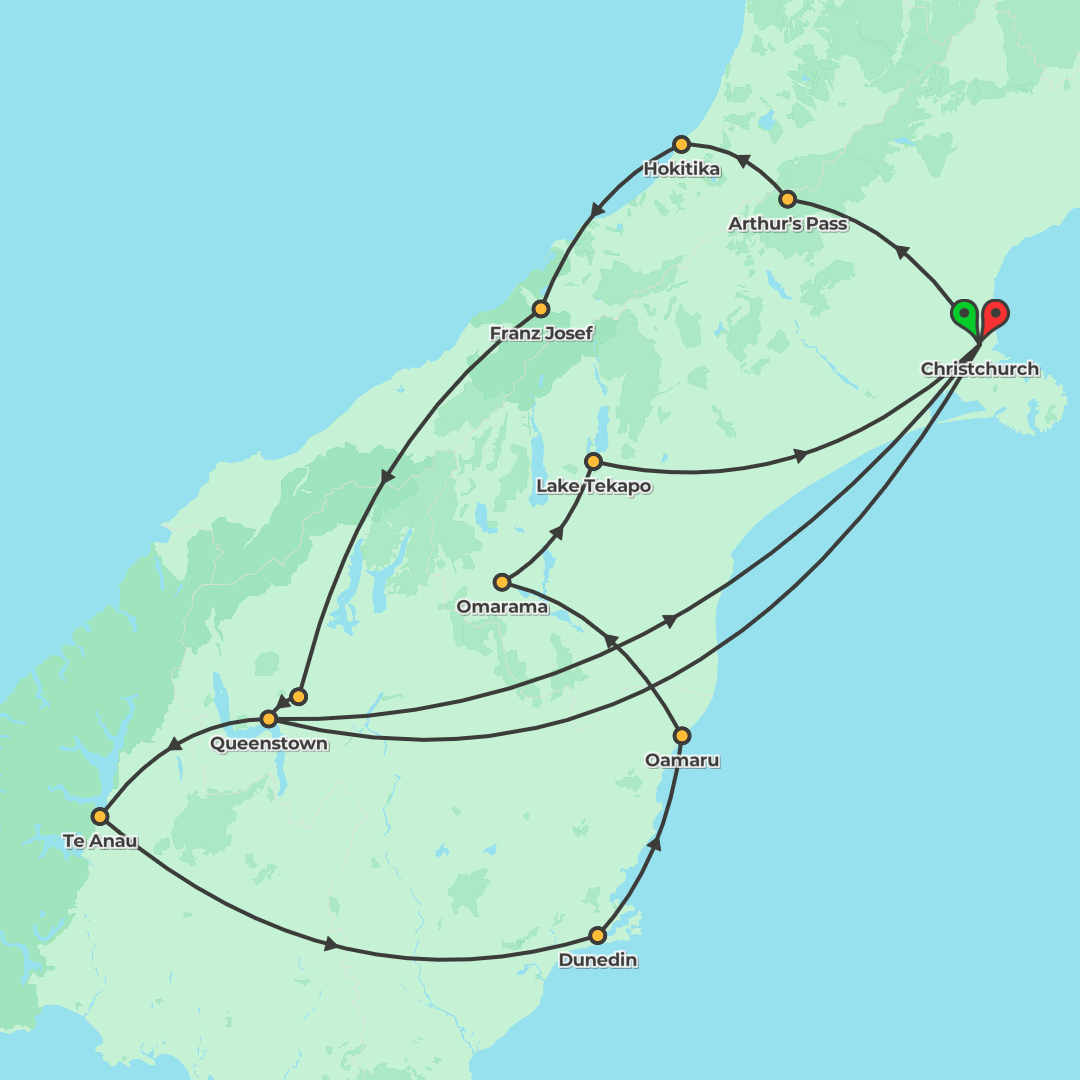 From Christchurch to Queenstown and the West Coast, this South Island adventure blends alpine lakes, an included Milford Sound cruise and time to choose your own thrills.
