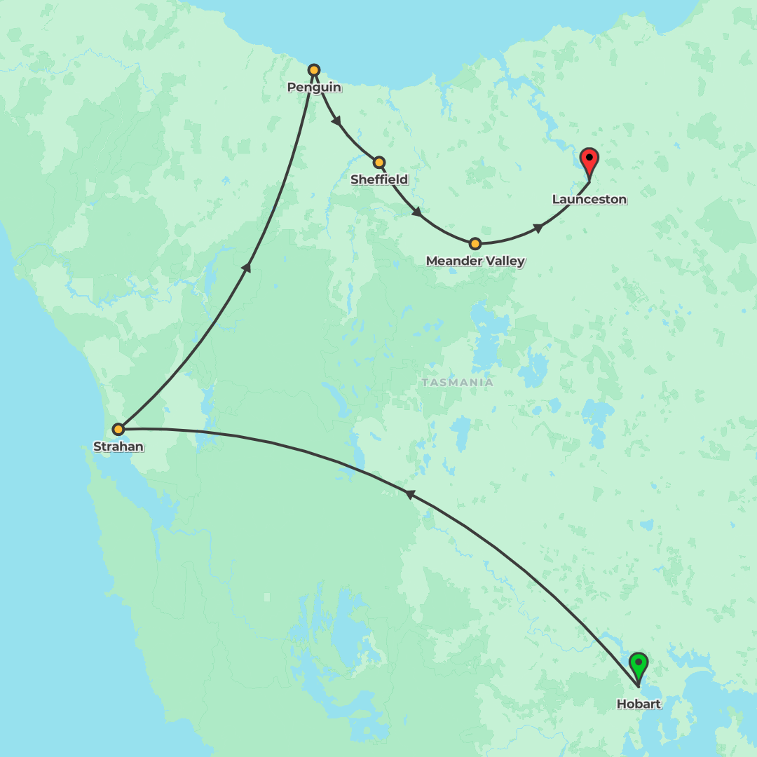 Journey from Hobart to Launceston through Tasmania’s parks and nature, featuring iconic landscapes, a Gordon River cruise, and MAKE TRAVEL MATTER experiences.
