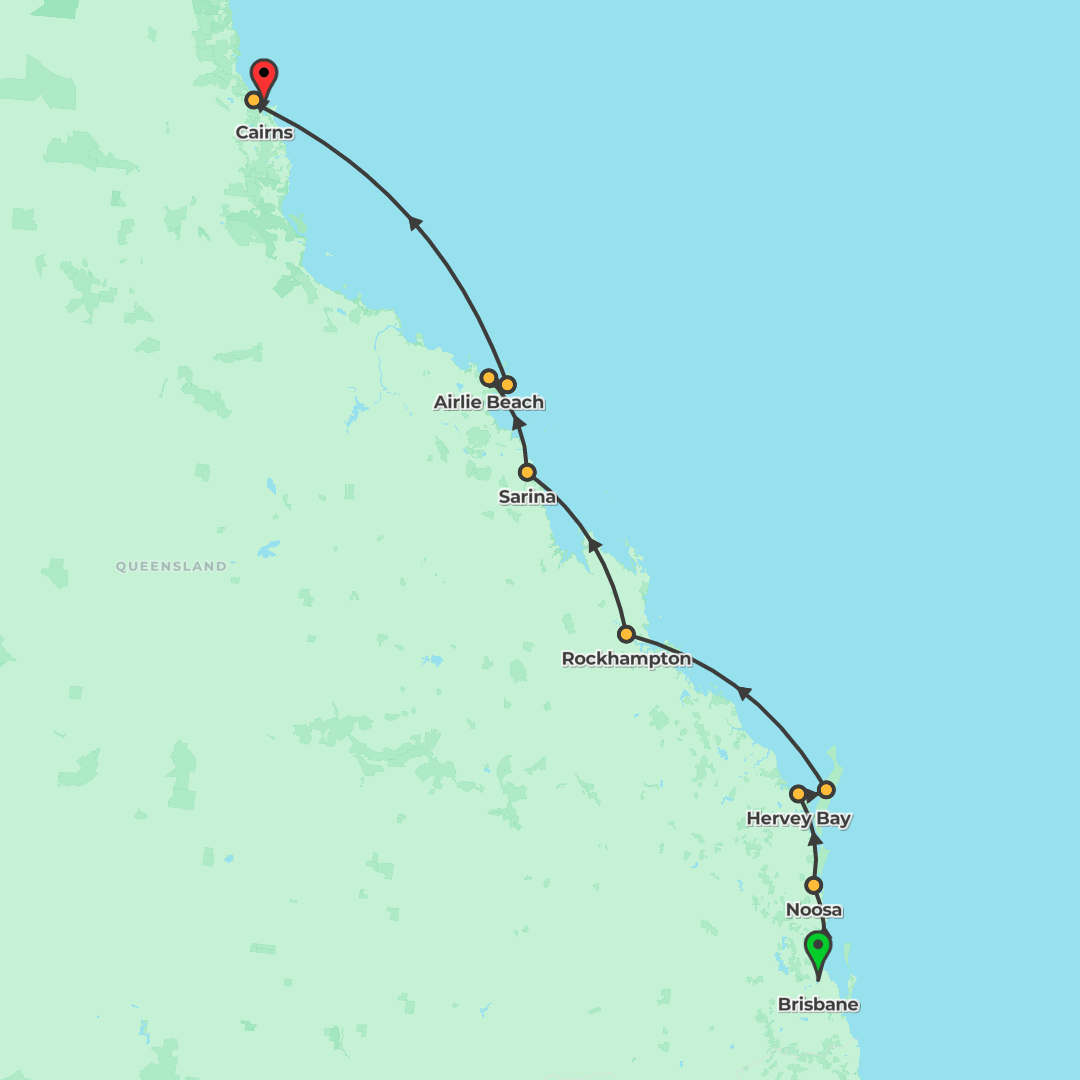 Journey from Brisbane to Cairns on a small-group escape featuring K’gari, the Whitsundays, the Great Barrier Reef and Kuranda’s rainforest.