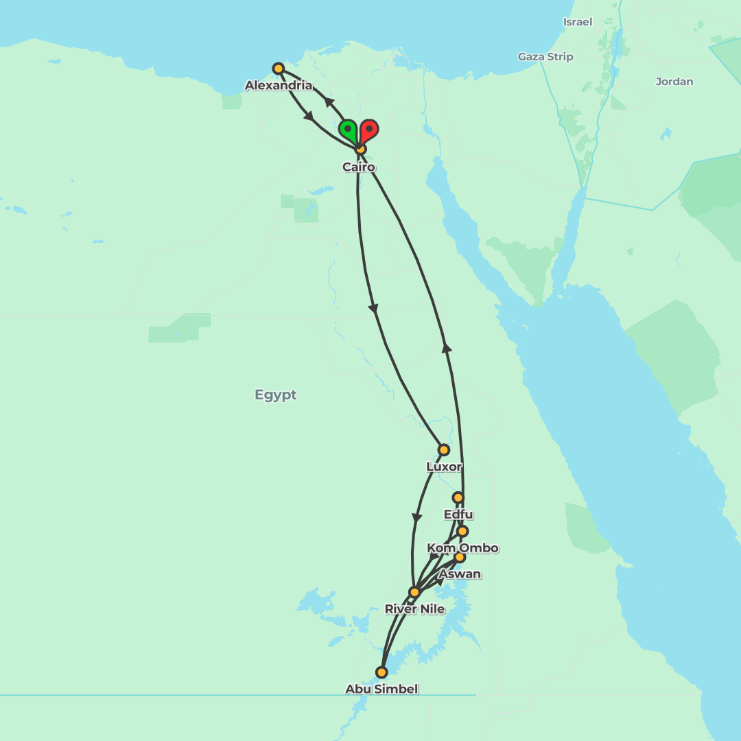 Explore Egypt’s most iconic destinations with a journey that begins in Cairo, continues to Alexandria, and travels along the Nile to Luxor, Aswan, and Abu Simbel.