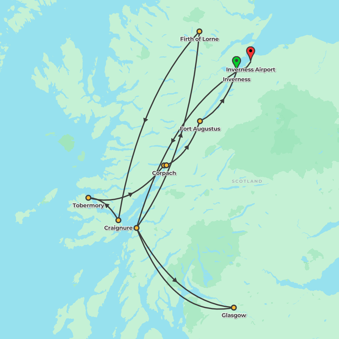 Voyage through the heart of Scotland on a seven-day MV Lord of the Glens cruise featuring canal and loch sailing, the Isle of Iona, Tobermory and a West Highland railway journey.