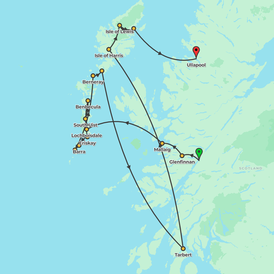 Island-hop through Scotland’s Outer Hebrides on a five-day coach tour featuring scenic ferry crossings, standing stones and heritage sites, led by a professional tour manager.