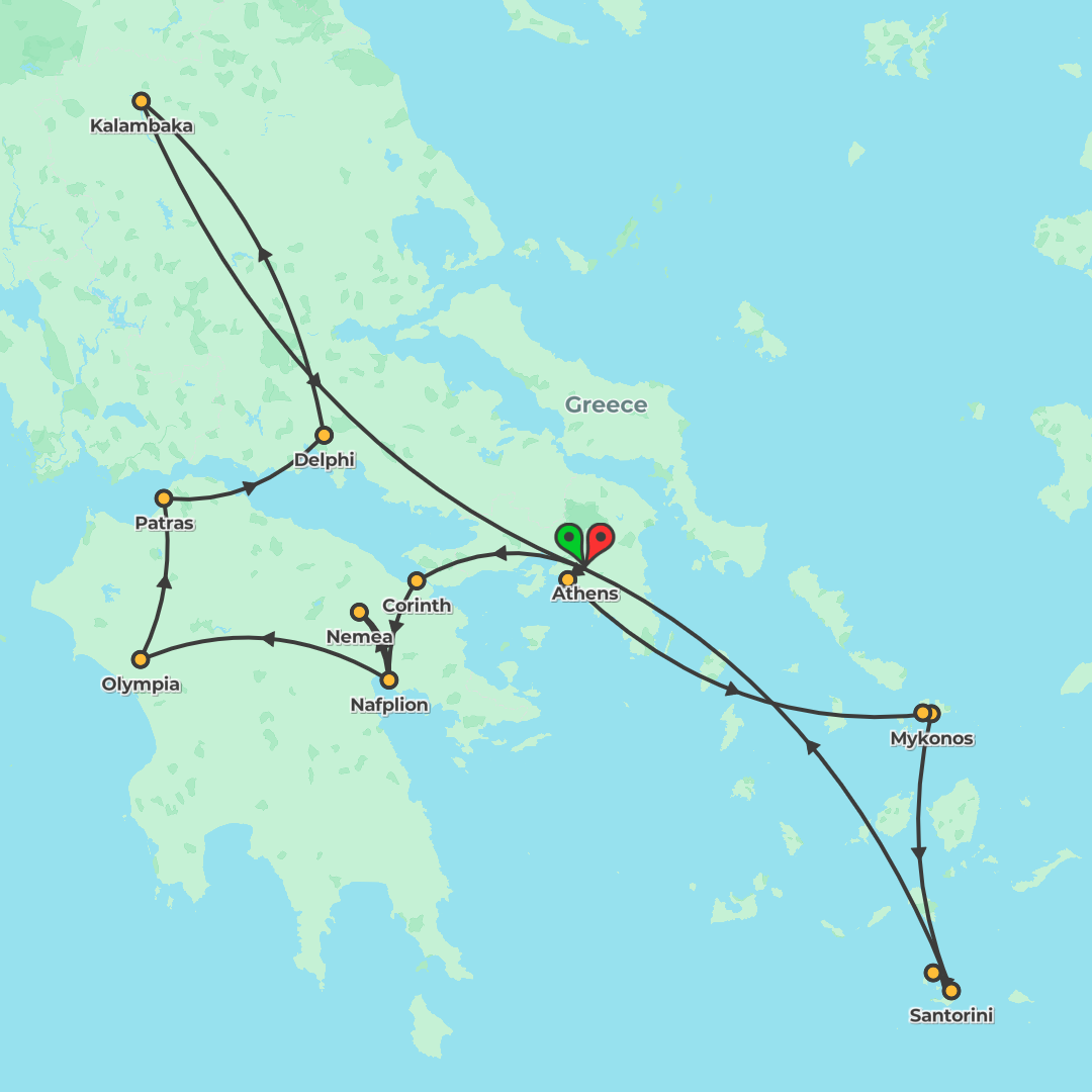 Explore Classical Greece from Athens and Meteora to the Cycladic islands, with guided visits to ancient sites, ferry-hopping to Mykonos, Naxos and Santorini, and immersive local experiences on a small