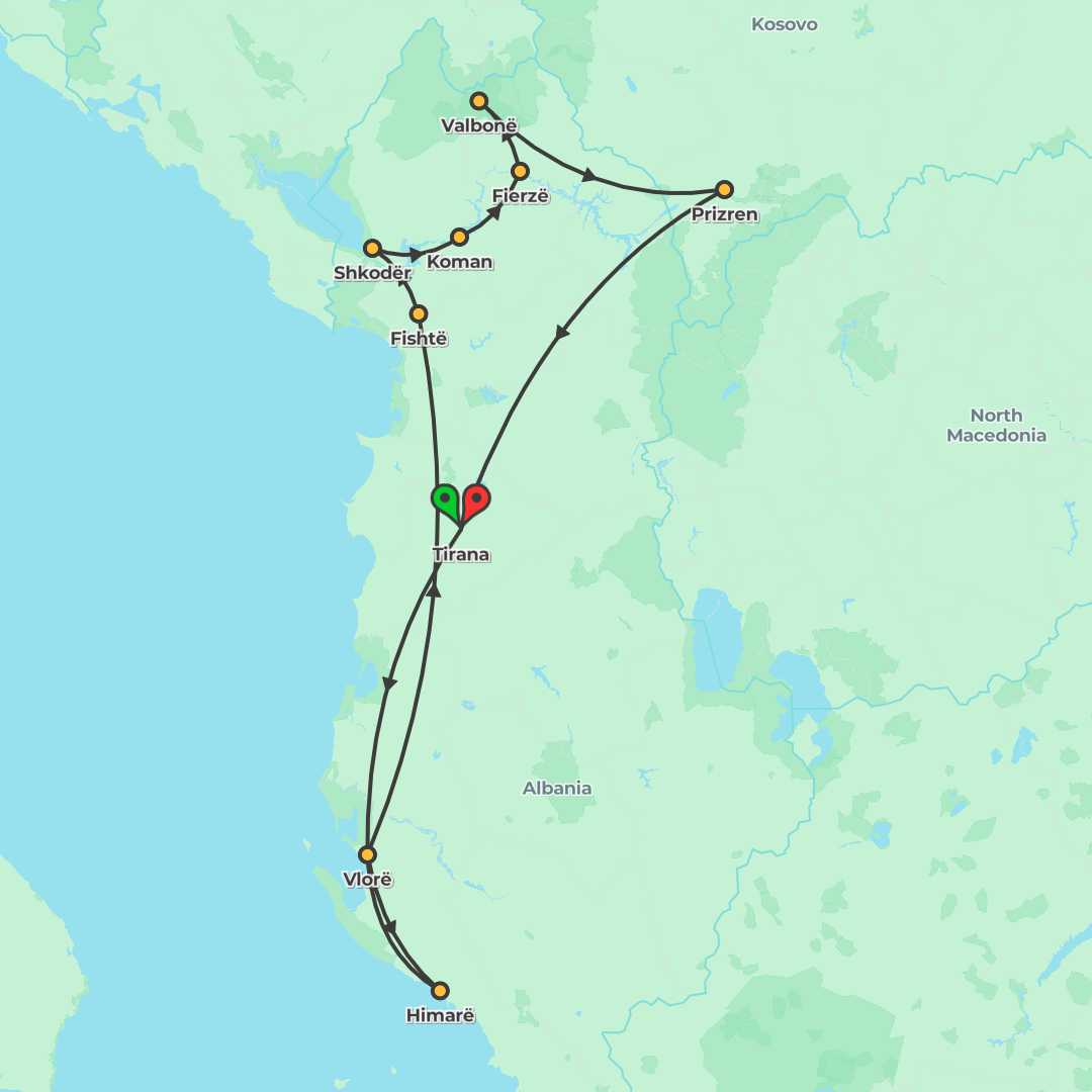Discover Albania’s beaches and peaks on an eight-day trip from Tirana, featuring the Albanian Riviera, a Lake Komani ferry, hiking in Valbonë National Park, and a cultural foray into Prizren.