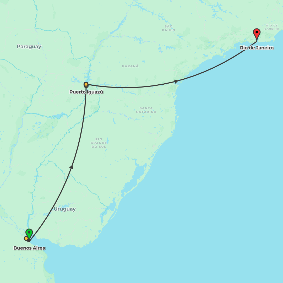 Experience Buenos Aires, Iguazu Falls, Paraty, Ilha Grande and Rio de Janeiro on a 14-day journey with guided excursions, free time, and included flights and transfers.