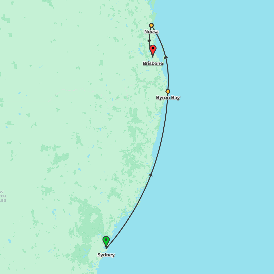 Journey from Sydney to Brisbane with city highlights, an included surf lesson in Byron Bay, time in the Noosa Everglades, and a day on K’Gari, led by your Trip Manager.