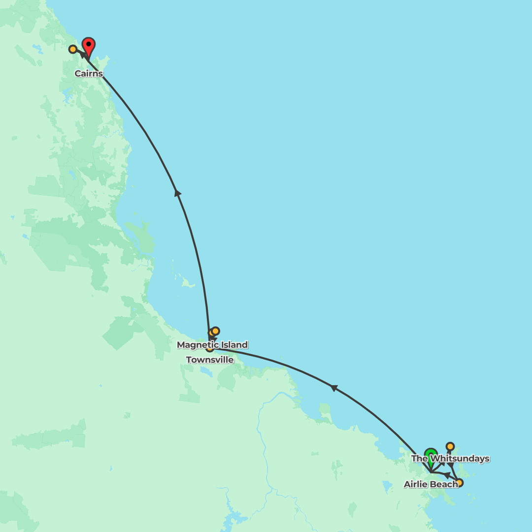 A sun-soaked North Queensland journey from Airlie Beach to Cairns, featuring sailing the Whitsundays, Magnetic Island vibes and unforgettable rainforest and reef moments.