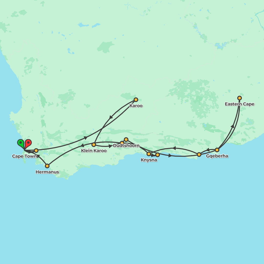 Discover Cape Town, Hermanus, Cape Agulhas, a Big 5 game reserve and Knysna on a 10-day Western Cape adventure featuring scenic drives, iconic views and choice-filled experiences.
