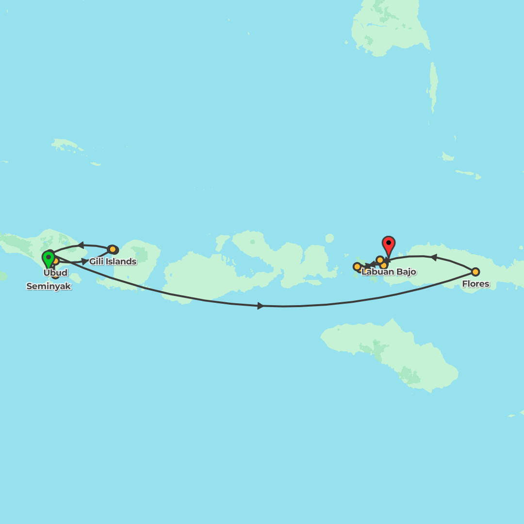 Island-hop across Bali, the Gili Islands and Flores to Komodo National Park on a 13-day adventure of beaches, snorkelling, short treks and a two-night houseboat voyage.