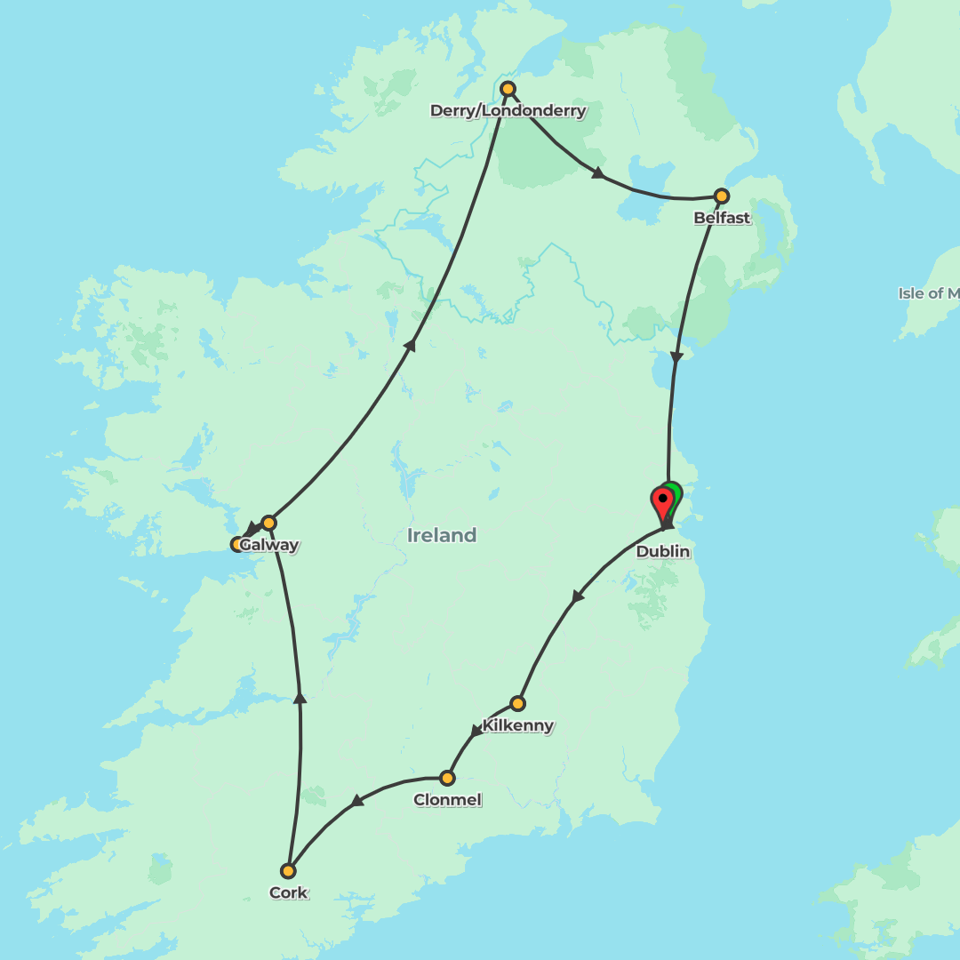 Explore Dublin, Galway and Belfast, with iconic stops like the Cliffs of Moher, Blarney Castle and the Giant’s Causeway on an 8-day summer journey round Ireland and Northern Ireland.