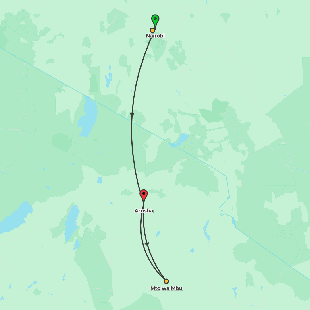 Explore Lake Manyara, Serengeti, Ngorongoro Crater and Tarangire on a guided safari from Arusha to Kilimanjaro Airport, staying in comfortable camps amid Tanzania’s wildlife-rich landscapes.