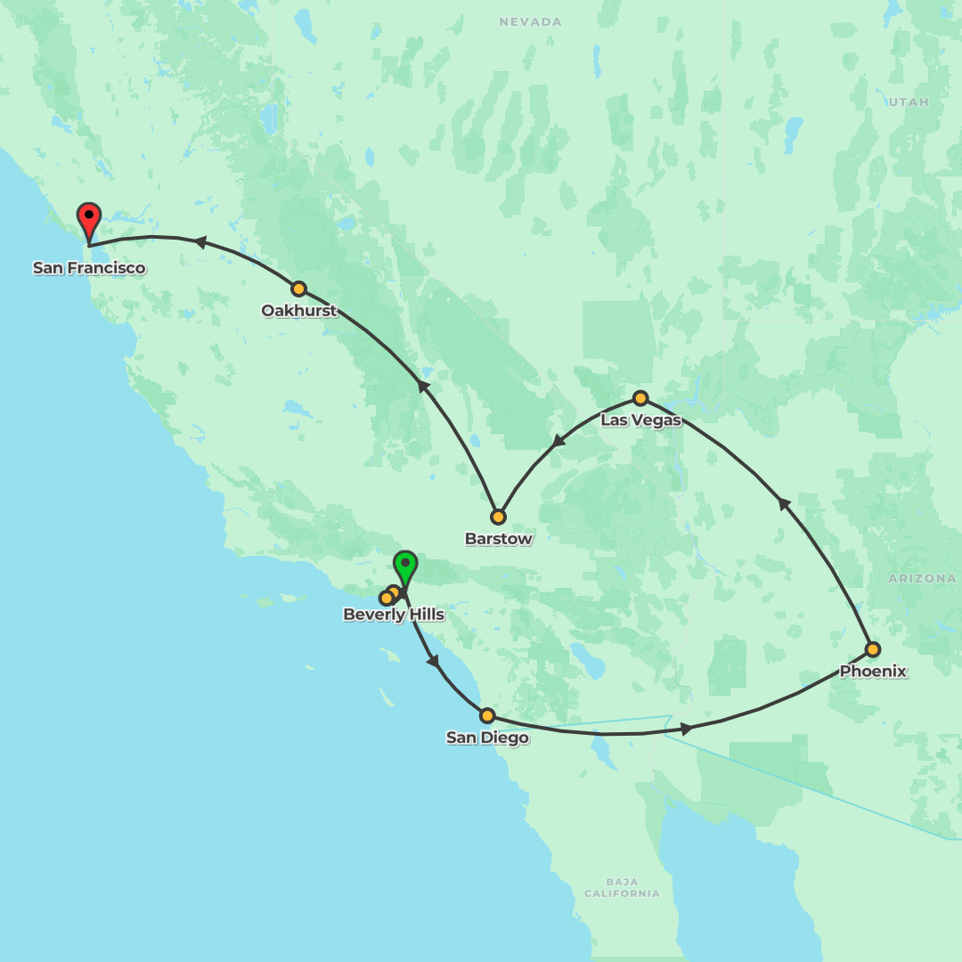 Journey from Los Angeles to San Francisco via San Diego, Phoenix, the Grand Canyon, Las Vegas and Yosemite on an 11-day adventure featuring scenic drives, city orientations and free time to explore.