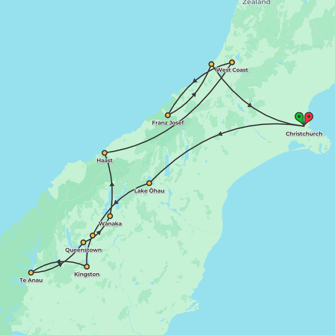 From Christchurch to Queenstown and the West Coast, this South Island adventure blends alpine lakes, an included Milford Sound cruise and time to choose your own thrills.