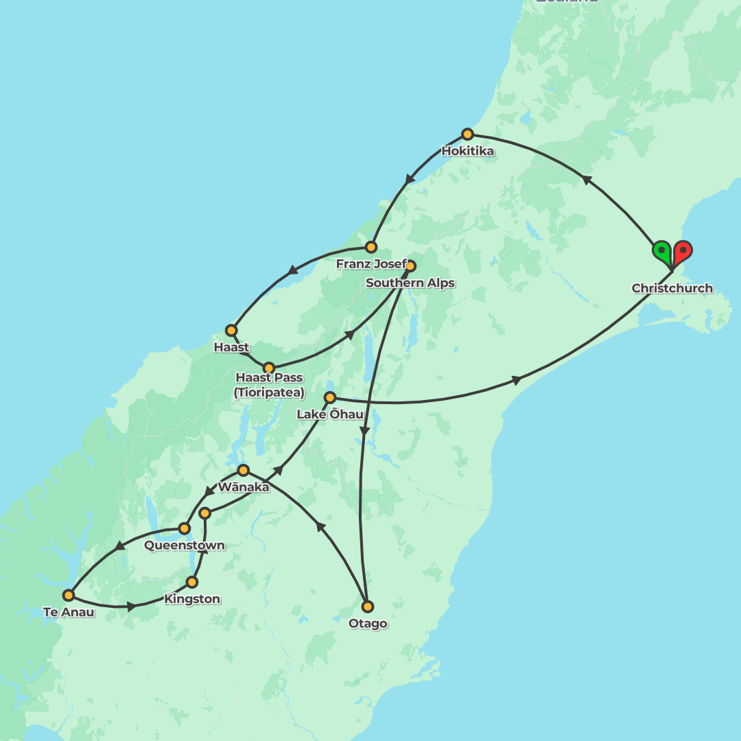 Explore New Zealand’s South Island from Christchurch to Queenstown, Wanaka and Franz Josef with a Mou Waho Island visit, pounamu carving and a TranzAlpine crossing.