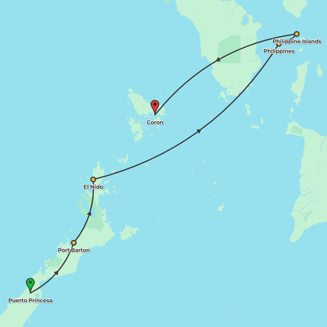 Island-hop across Palawan from Puerto Princesa to Coron with jeepney tours, a rustic island Special Stay, and a private-boat beach camp expedition.