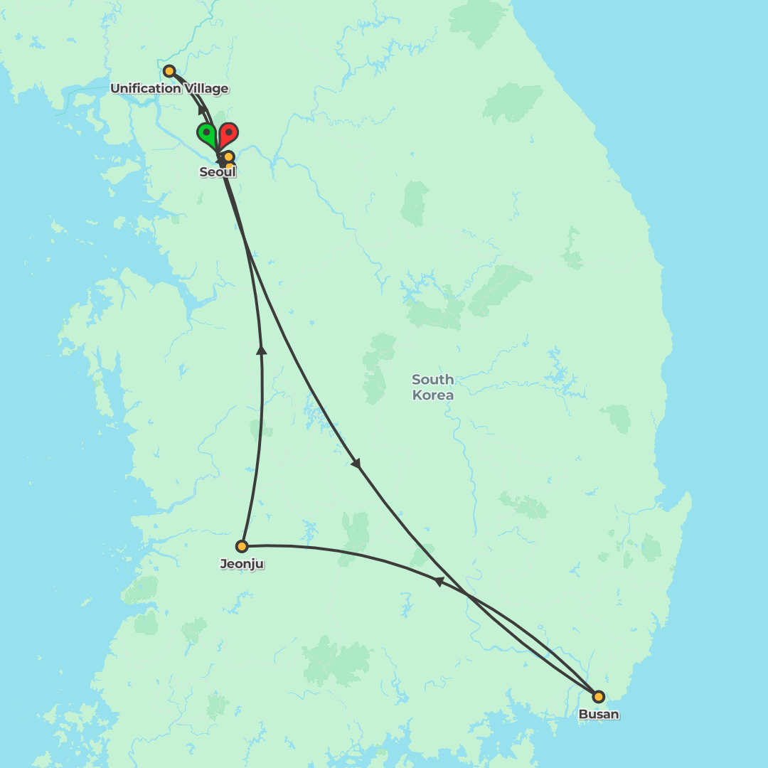 Discover South Korea on a 9-day Seoul-to-Seoul journey blending city highlights, traditional experiences and vibrant nights from the DMZ to Busan and Hongdae.