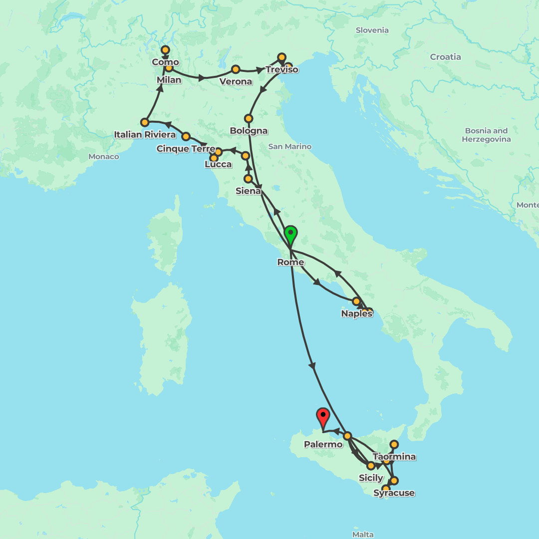 From Rome to Palermo, Ultimate Italy (Age 27–35 | 2026) spans mainland icons and Sicily with guided moments, free time and unforgettable stops along the way.