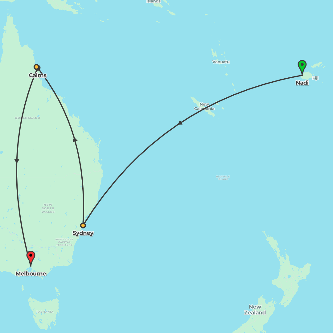 Experience Fiji’s beaches and Australia’s icons across Sydney, Cairns, and Melbourne with guided highlights like the Sydney Opera House, a harbour cruise, and a Great Barrier Reef catamaran, balanced