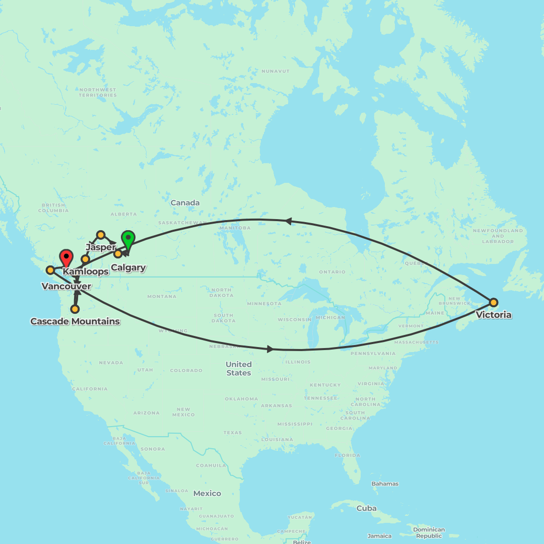 Discover the Canadian Rockies from Vancouver and Victoria to Whistler, Jasper, Banff and Calgary, featuring BC Ferries crossings, a Maligne Lake cruise, Columbia Icefield adventure, Banff Gondola view