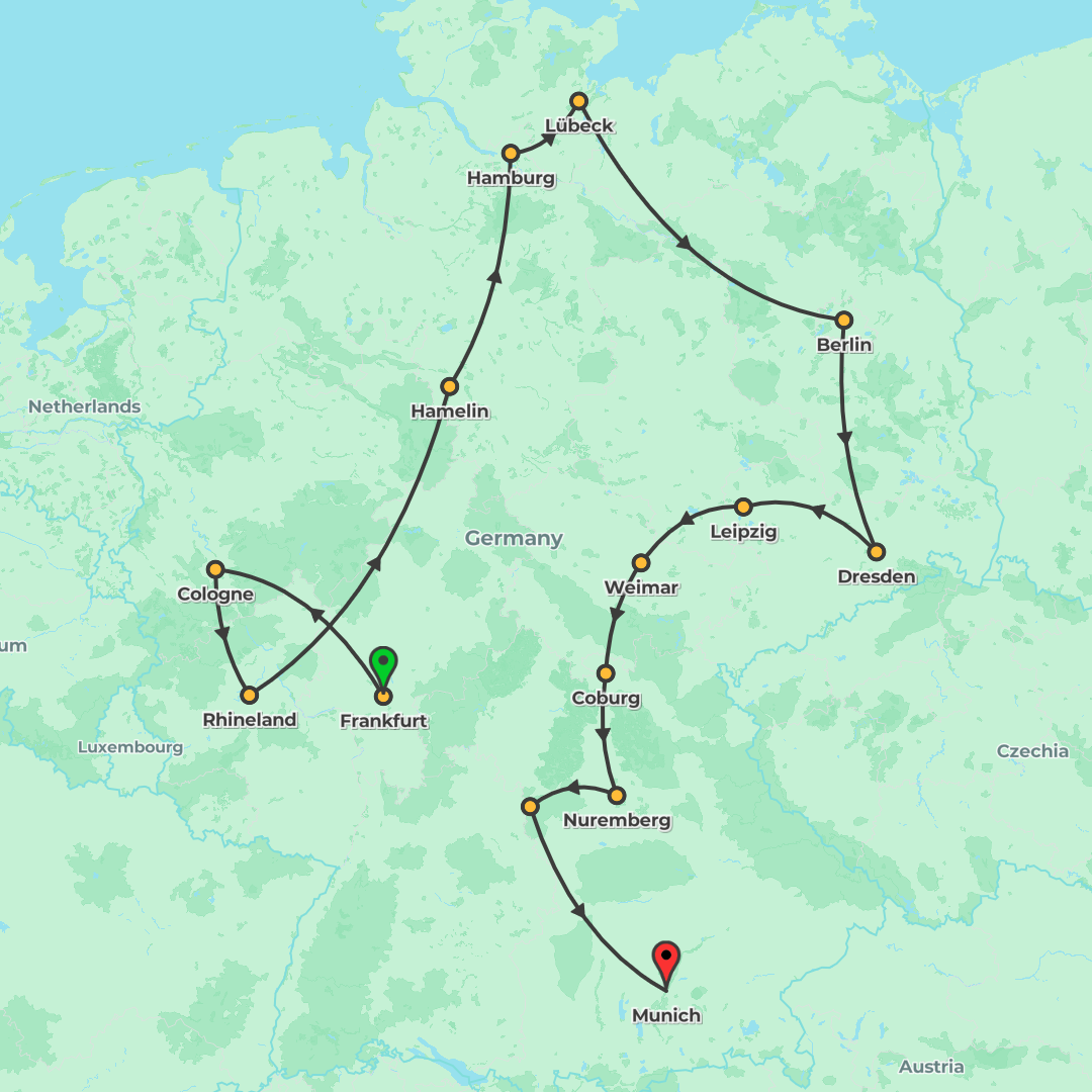 Discover Germany’s highlights on a multi-city itinerary from Frankfurt to Munich with an included Rhine cruise and guided sightseeing.