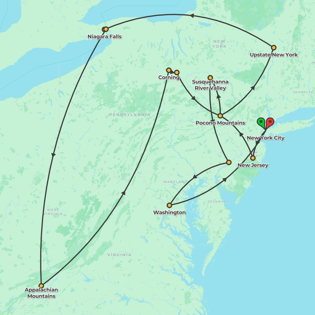 Experience New York City, Niagara Falls, Philadelphia, and Washington DC on a multi-city adventure with guided sightseeing, a Niagara Falls cruise, and an extended stay in New York.