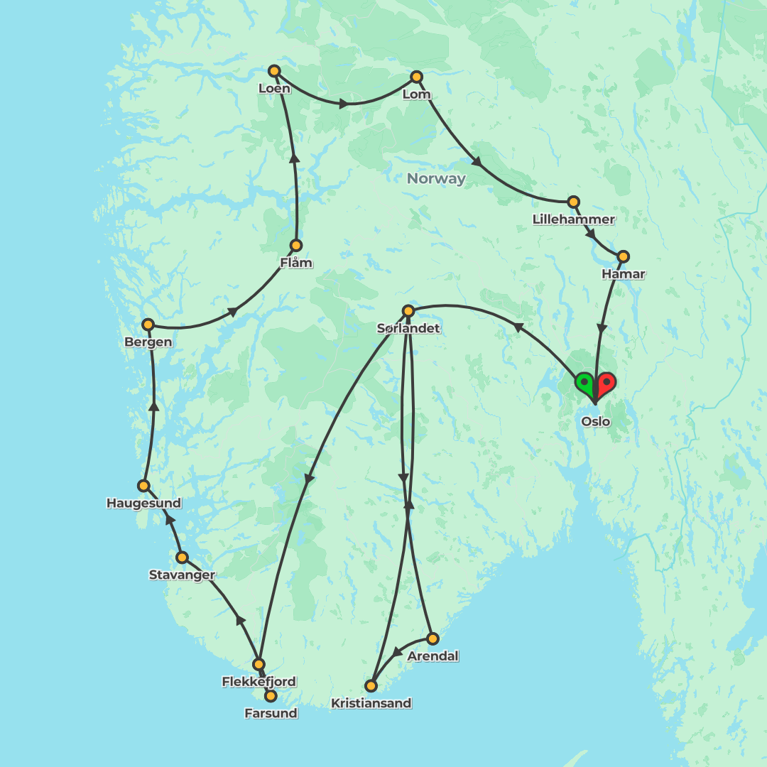 Explore Norway from Oslo to the western fjords, visiting coastal towns, crossing Hardangerfjord by ferry, cruising the Sognefjord Nærøyfjord, and riding the Flåm train on an escorted itinerary.