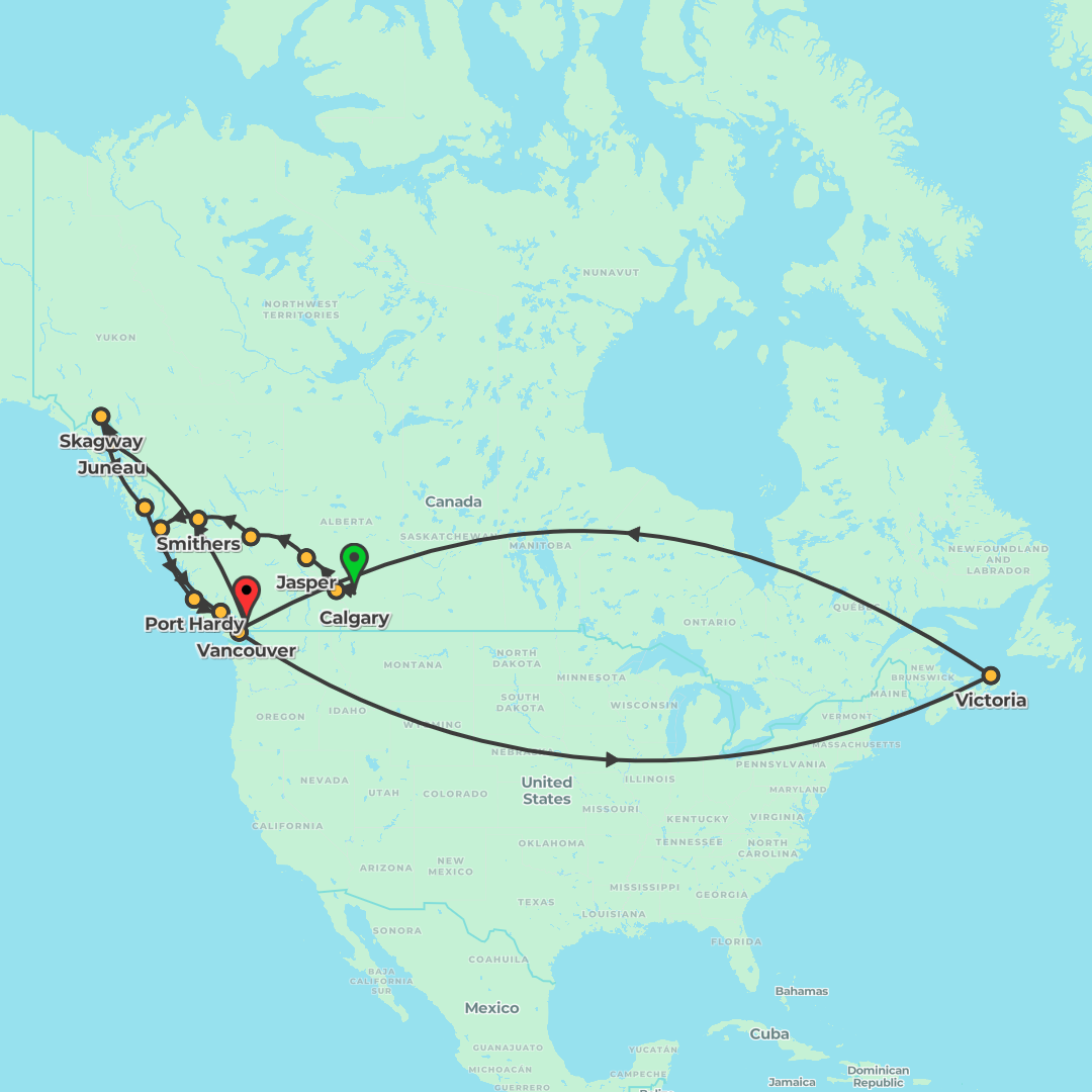 Journey from Vancouver through Victoria and the Canadian Rockies to Glacier National Park, ending in Seattle on a small-group, fully guided adventure featuring Maligne Lake, the Icefields Parkway and
