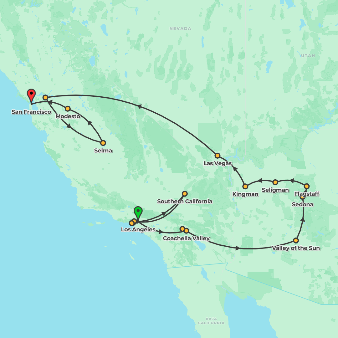 Explore the American West from Los Angeles to San Francisco via the Grand Canyon, Las Vegas and Yosemite on a curated coach tour with cherry-picked hotels and an expert Travel Director.