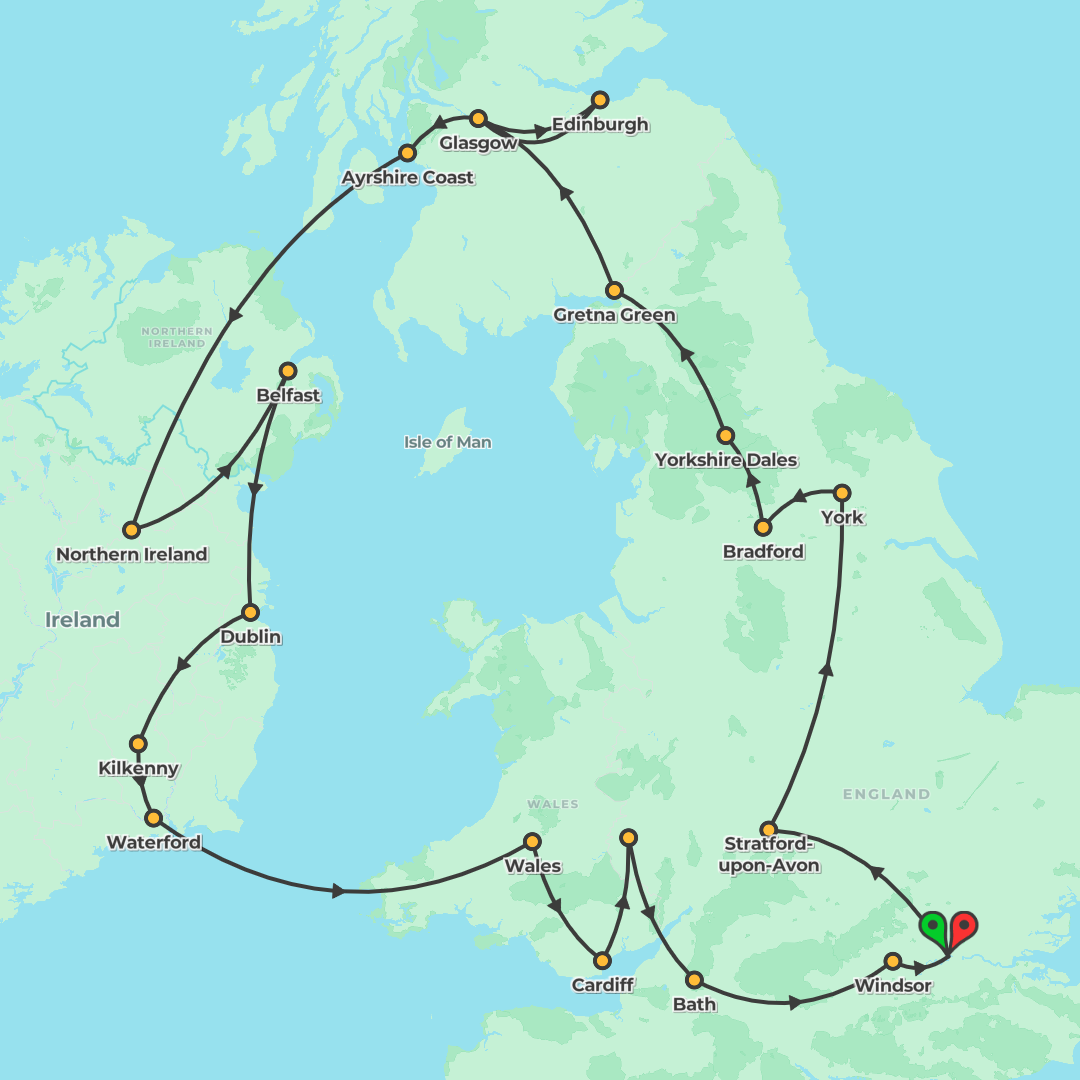 Explore Britain and Ireland on a 10-day journey from London through Edinburgh, Belfast, Dublin and Cardiff, featuring iconic sights, cultural visits and special local experiences.
