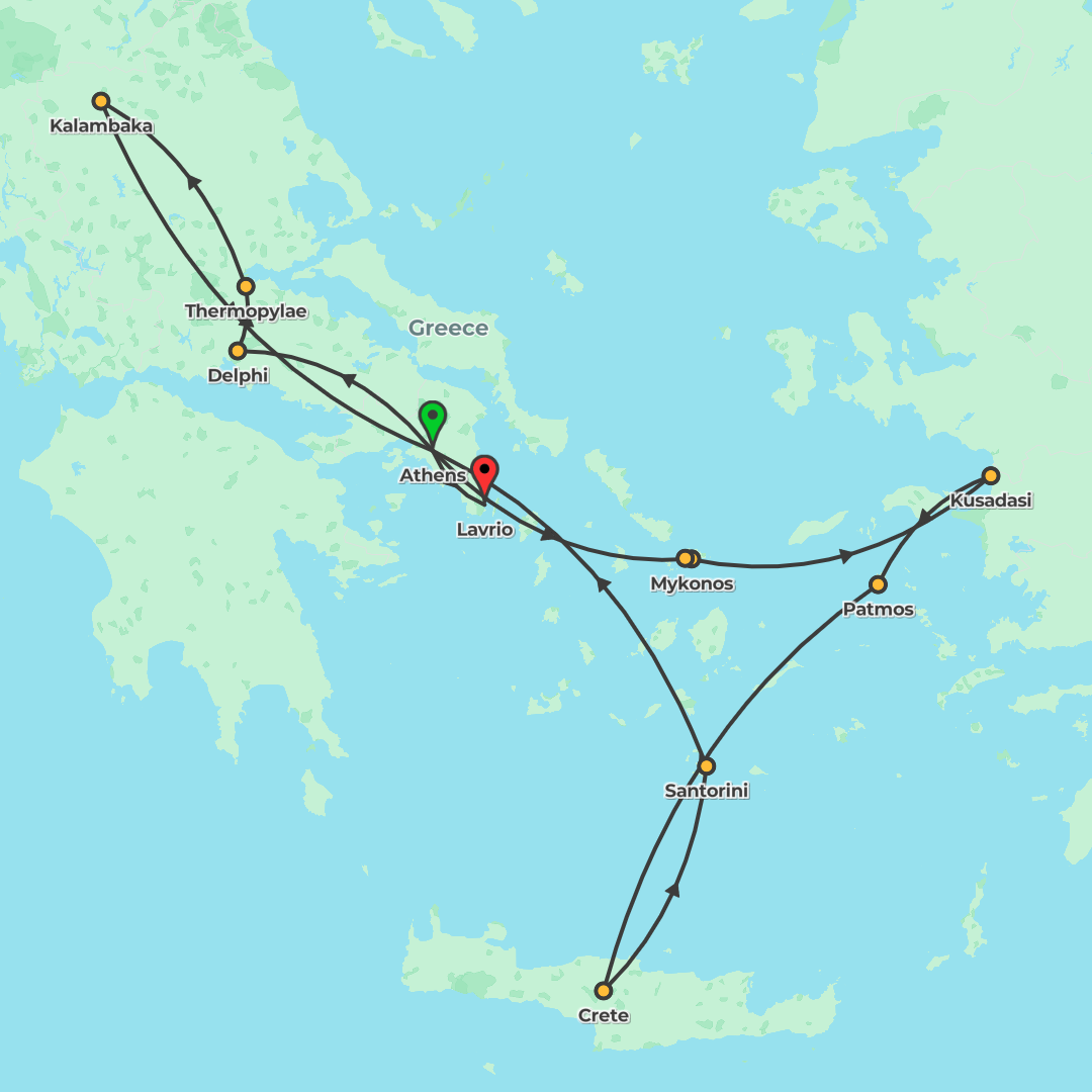 Discover ancient wonders and sun-soaked islands on a 15-day guided journey through Greece and Turkey, combining Athens, Delphi, Meteora and Olympia with an Aegean cruise to Crete, Santorini, Mykonos,