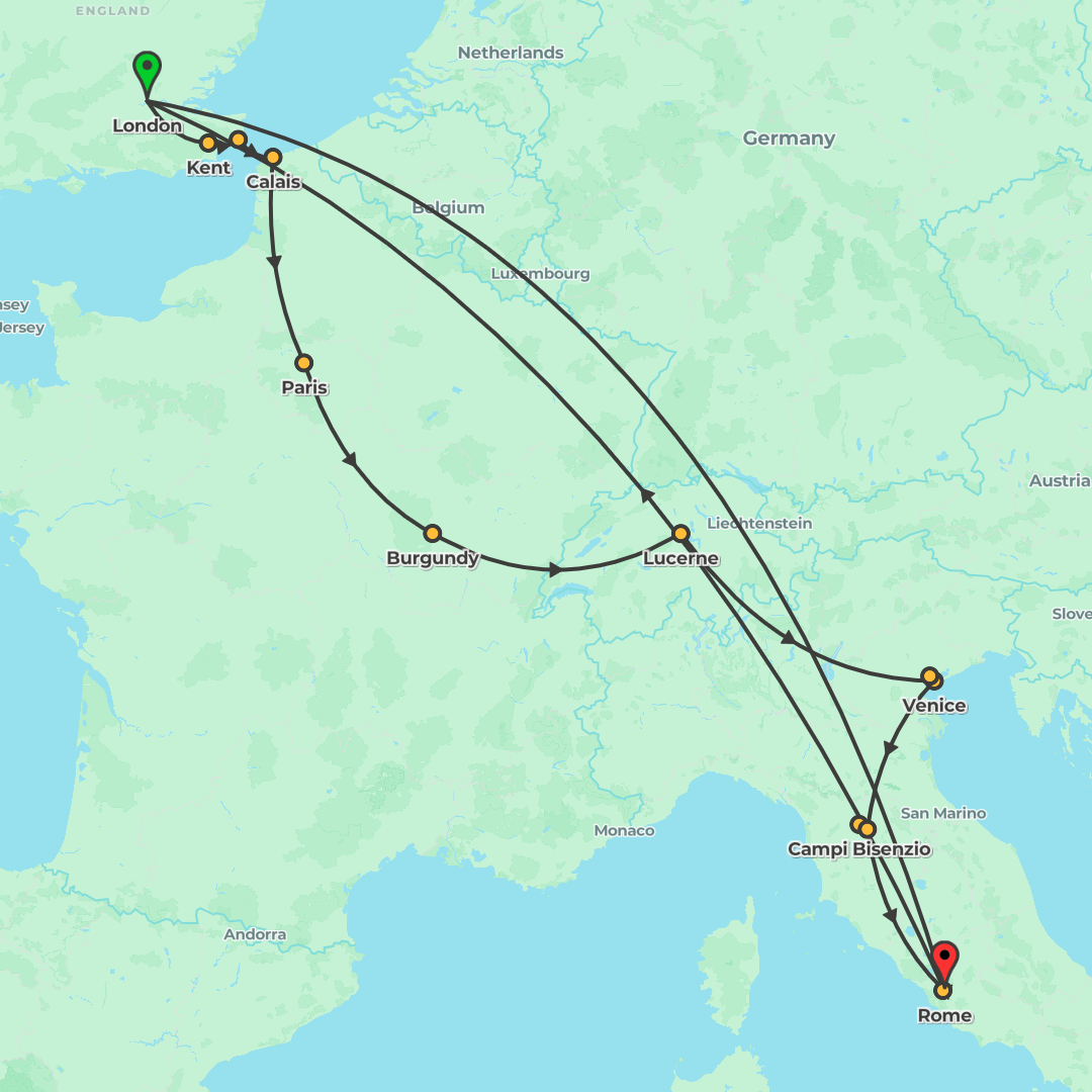See Europe’s icons on a 10‑day journey from London to Rome, taking in Paris, Lucerne, Venice and Florence with cherry‑picked hotels, a Travel Director, and comfortable coach travel.