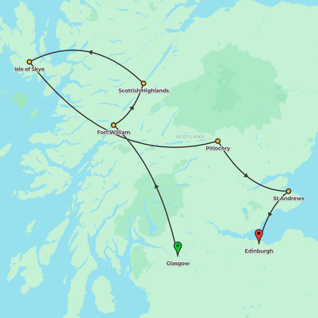 Discover Scotland’s rugged Highlands, storied lochs and castles on a seven‑day journey from Glasgow to Edinburgh, with guided city highlights and flexible Choice Experiences along the way.