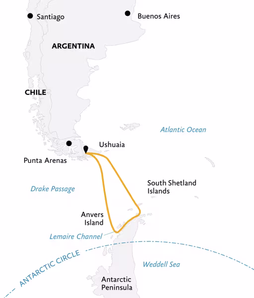 Journey from Buenos Aires to the Antarctic Circle aboard Ultramarine, combining awe-inspiring polar landscapes, wildlife encounters, and expert-led exploration.