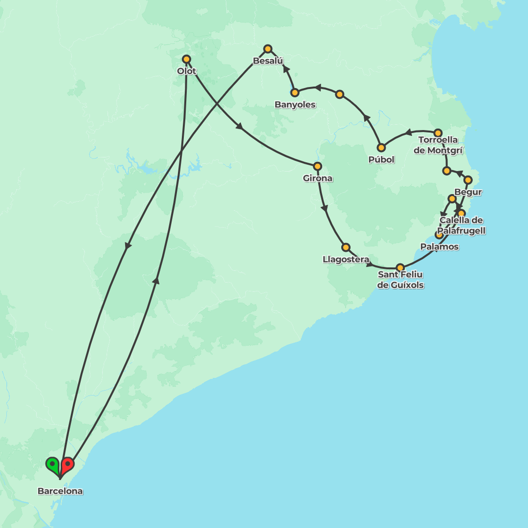 A guided Catalan cycling adventure from Barcelona through Girona to the Costa Brava, blending car-free rides, coastal swims and medieval town strolls with a memorable winery visit.