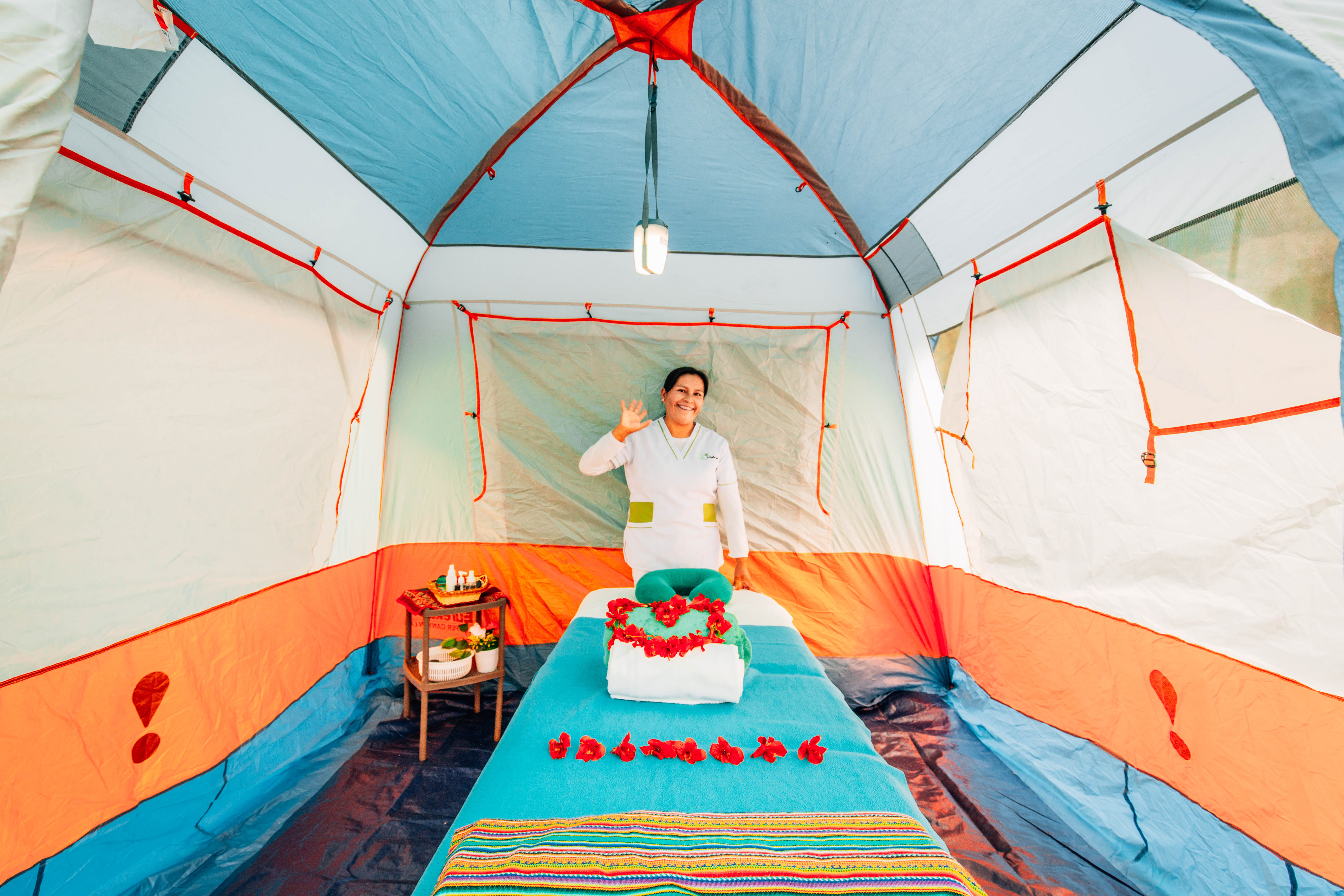 Our glamping nights will undoubtedly be a highlight of the adventure. We sleep in spacious tents with raised beds that have mattresses and pillows (bliss after a hiking day). There’s also a dining tent where we gather for exquisite chef-prepped meals. And if your muscles are feeling a little tired, there’s even a massage tent. Of course, the beauty of the mountain setting and millions of stars at night only adds to the magic.