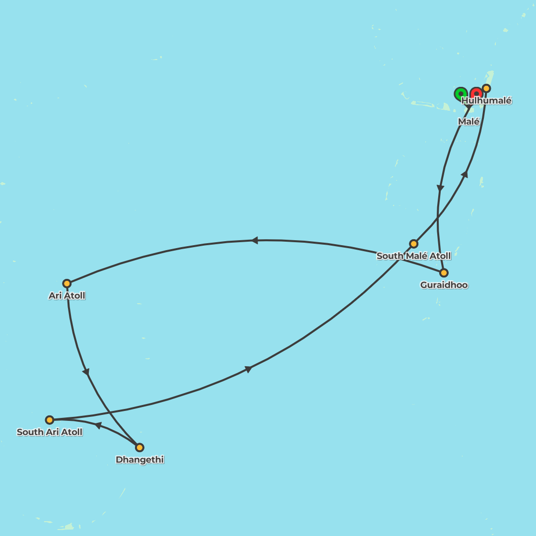 Sail the Maldives on a six-night marine wildlife adventure, snorkelling reefs and searching for whale sharks from a comfortable sailboat with all meals included.