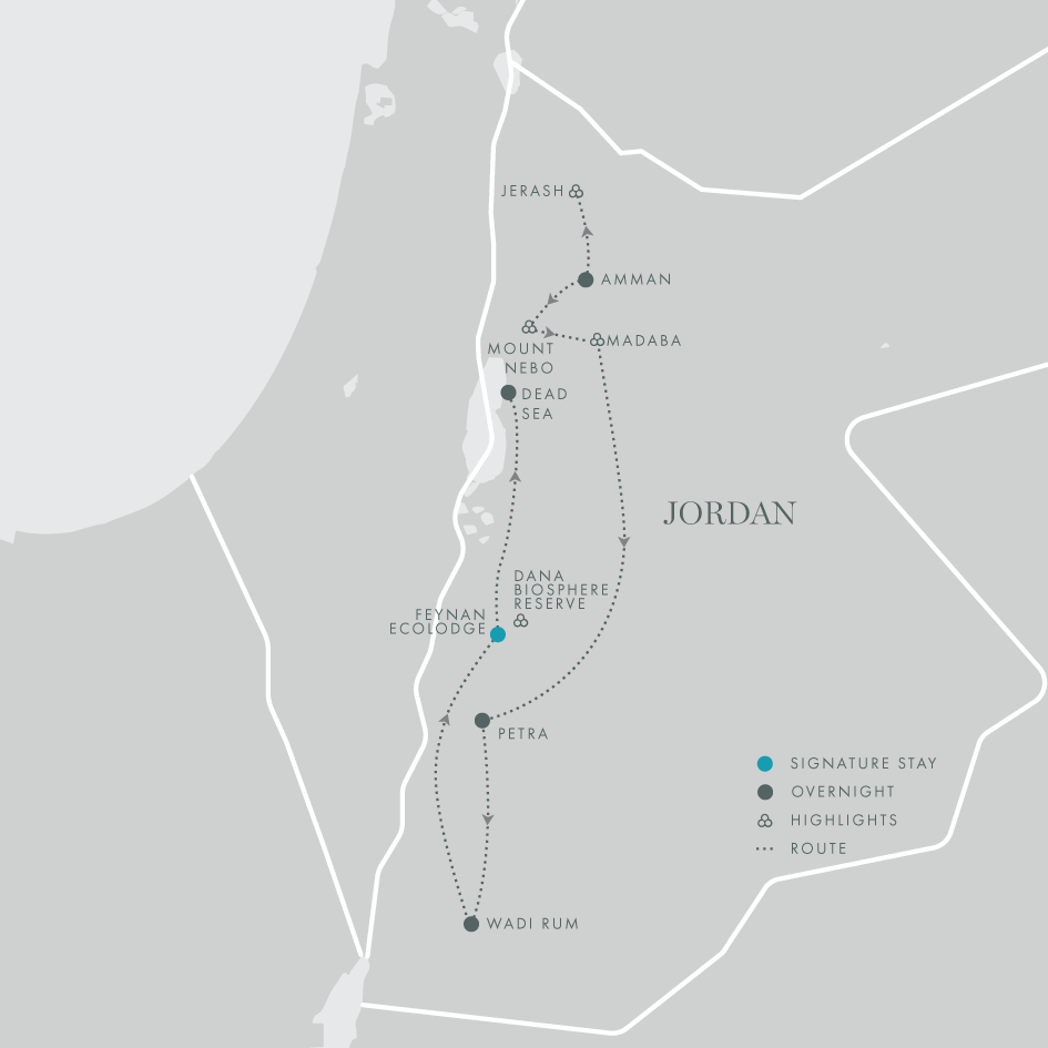 Discover Jordan on a Signature journey from Amman to Petra, Wadi Rum and the Dana Biosphere Reserve, blending boutique stays with immersive experiences and evocative dining.
