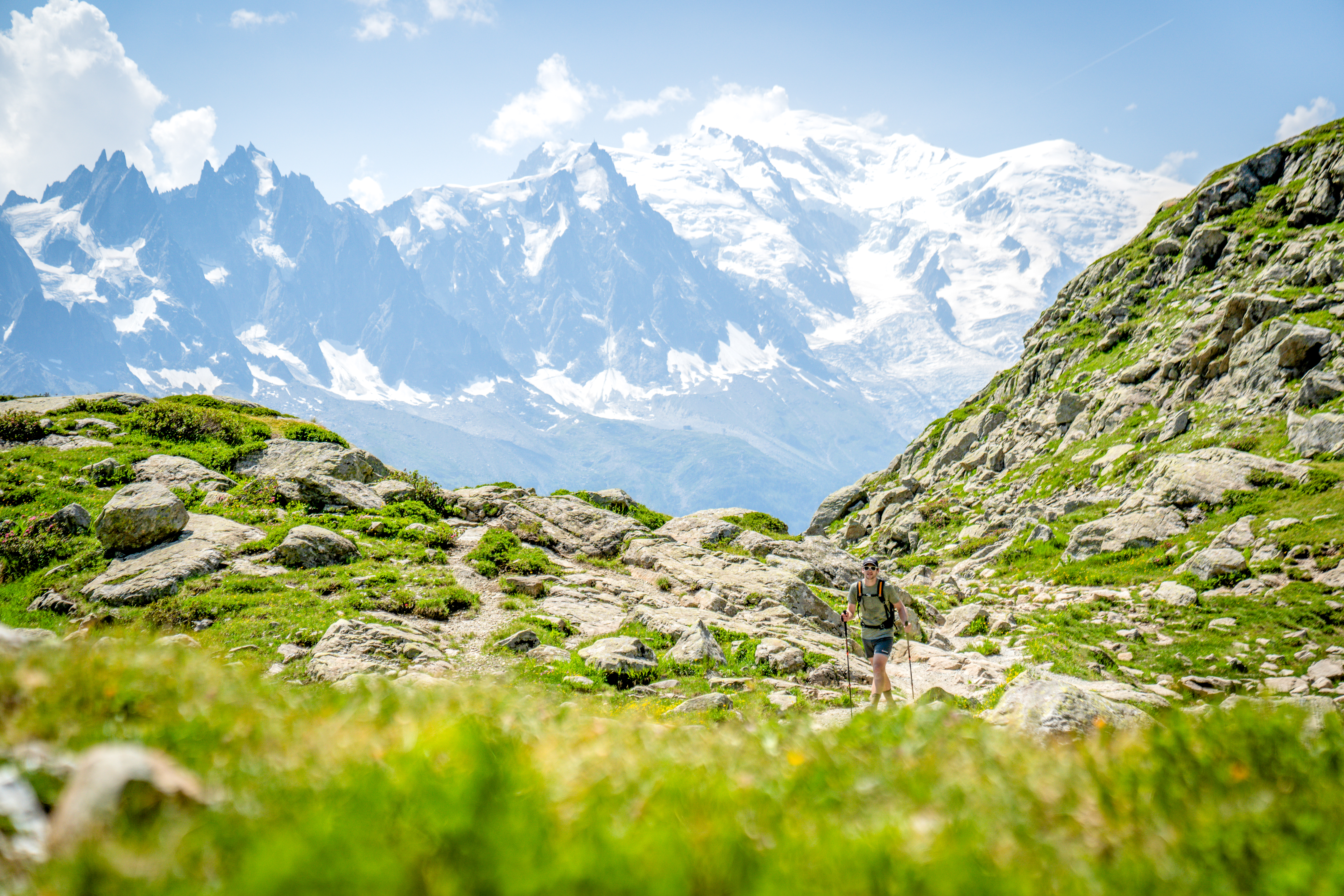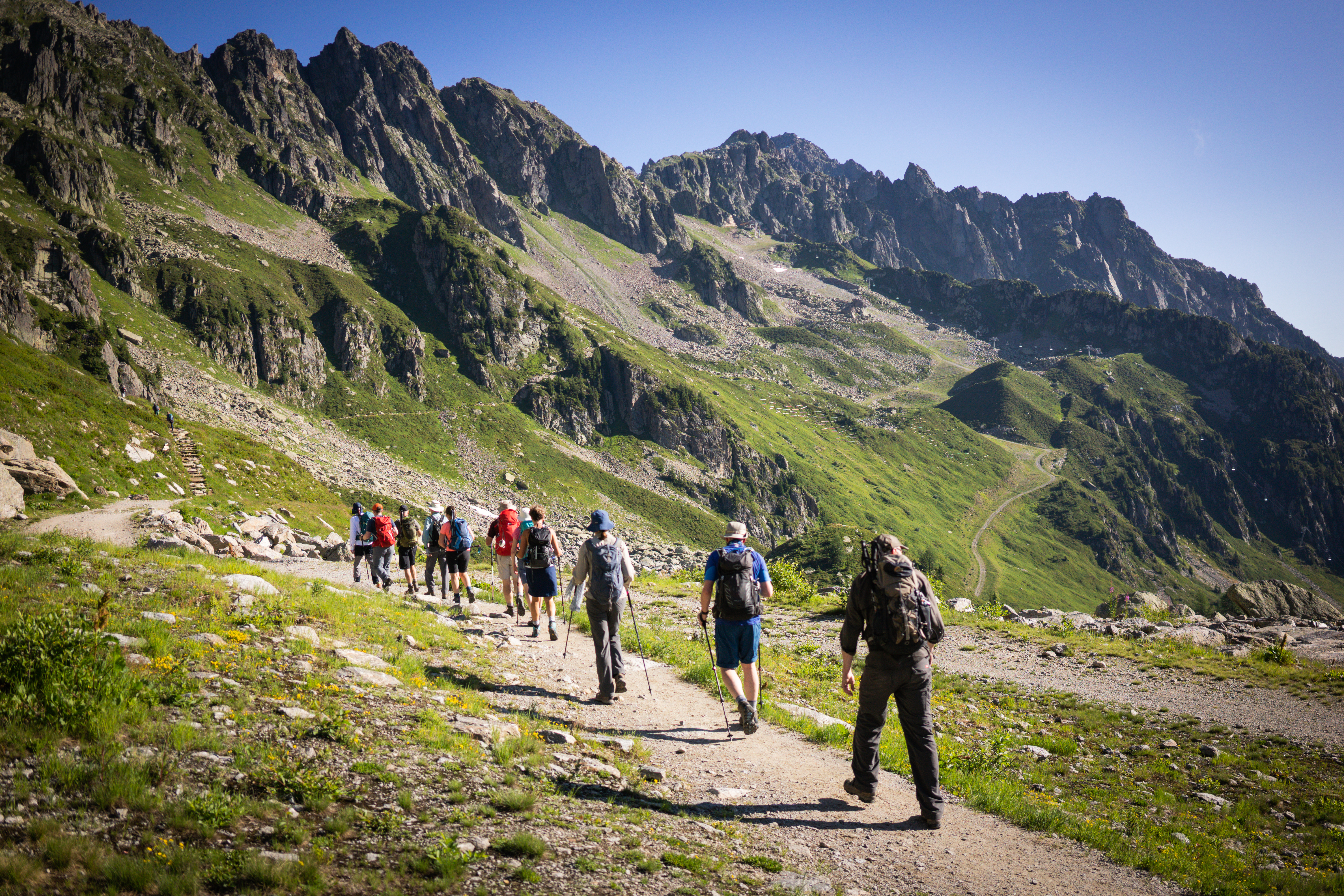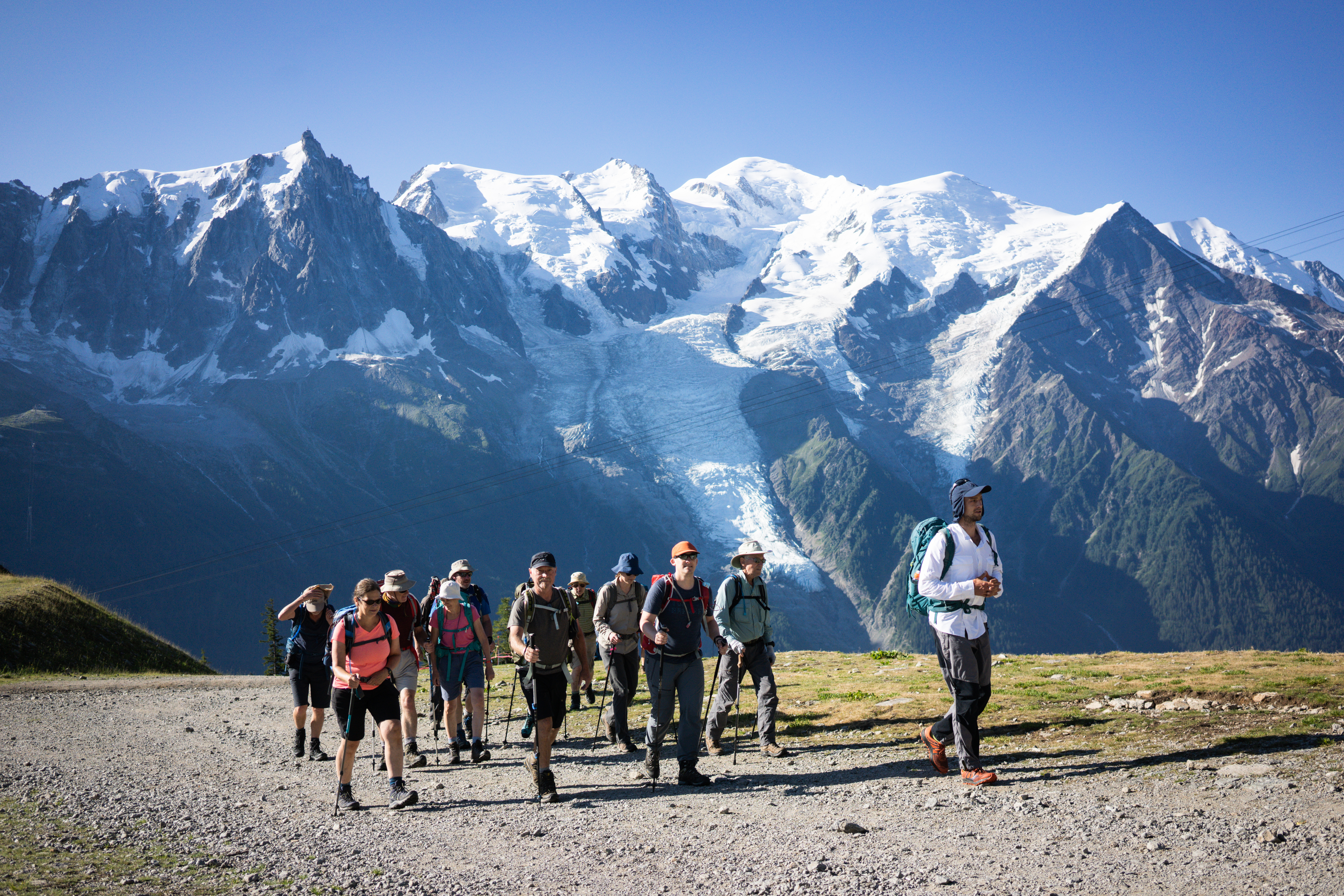 Hike the iconic Tour du Mont Blanc with a small group and an International Mountain Leader, staying in comfortable hotels and lodges with luggage transfers and cable cars, across spectacular alpine la