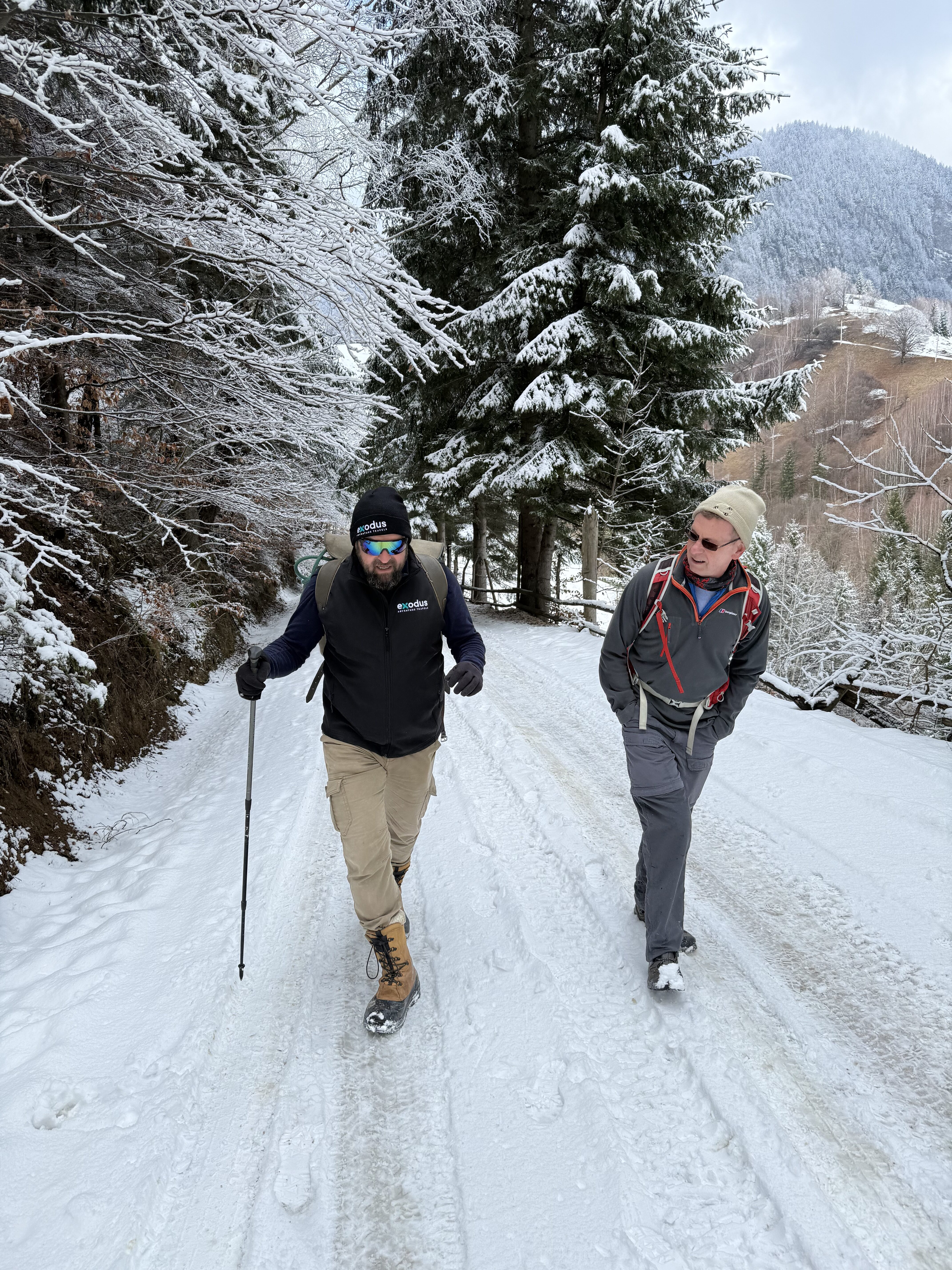 Explore Transylvania’s Carpathian winter on guided walks and snowshoeing from a private guesthouse in Magura, featuring wildlife tracks, the Libearty bear sanctuary, Zarnesti Canyon and Bran Castle.