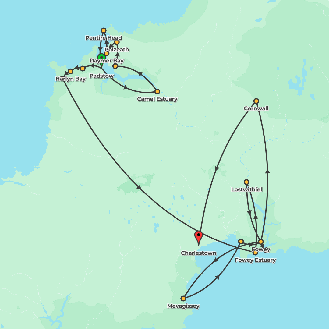 On this walking adventure in Cornwall, our time is split between two traditional seaside towns: Padstow and Charlestown.