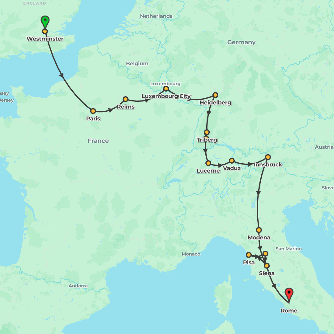 Experience a fully guided 10-day coach journey from London to Rome through iconic cities and scenic regions of Western Europe, with a balanced mix of sightseeing and free time.