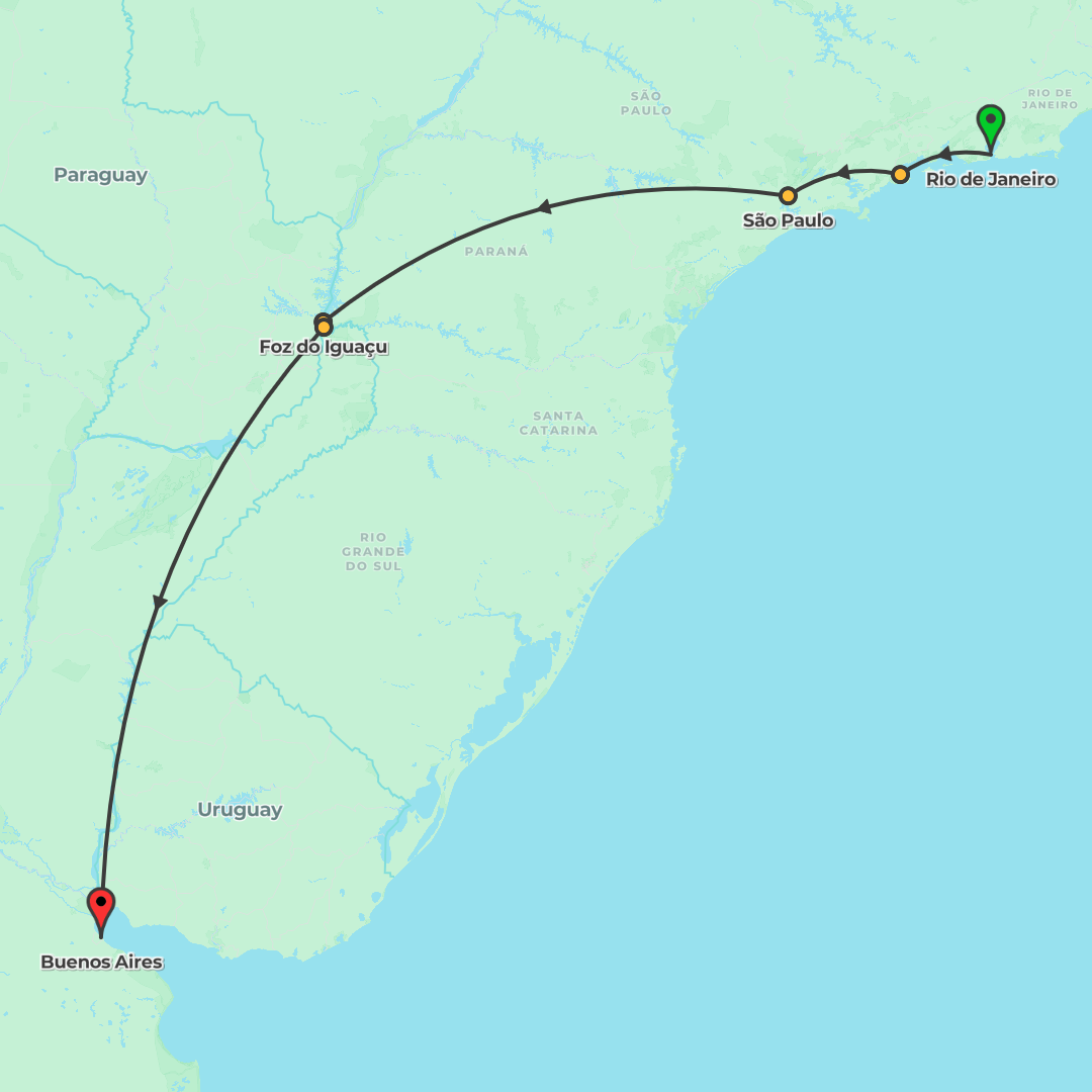 Explore Rio de Janeiro, Iguassu Falls and Buenos Aires with guided sightseeing, cross-border visits to both sides of the falls, and flights connecting each destination.