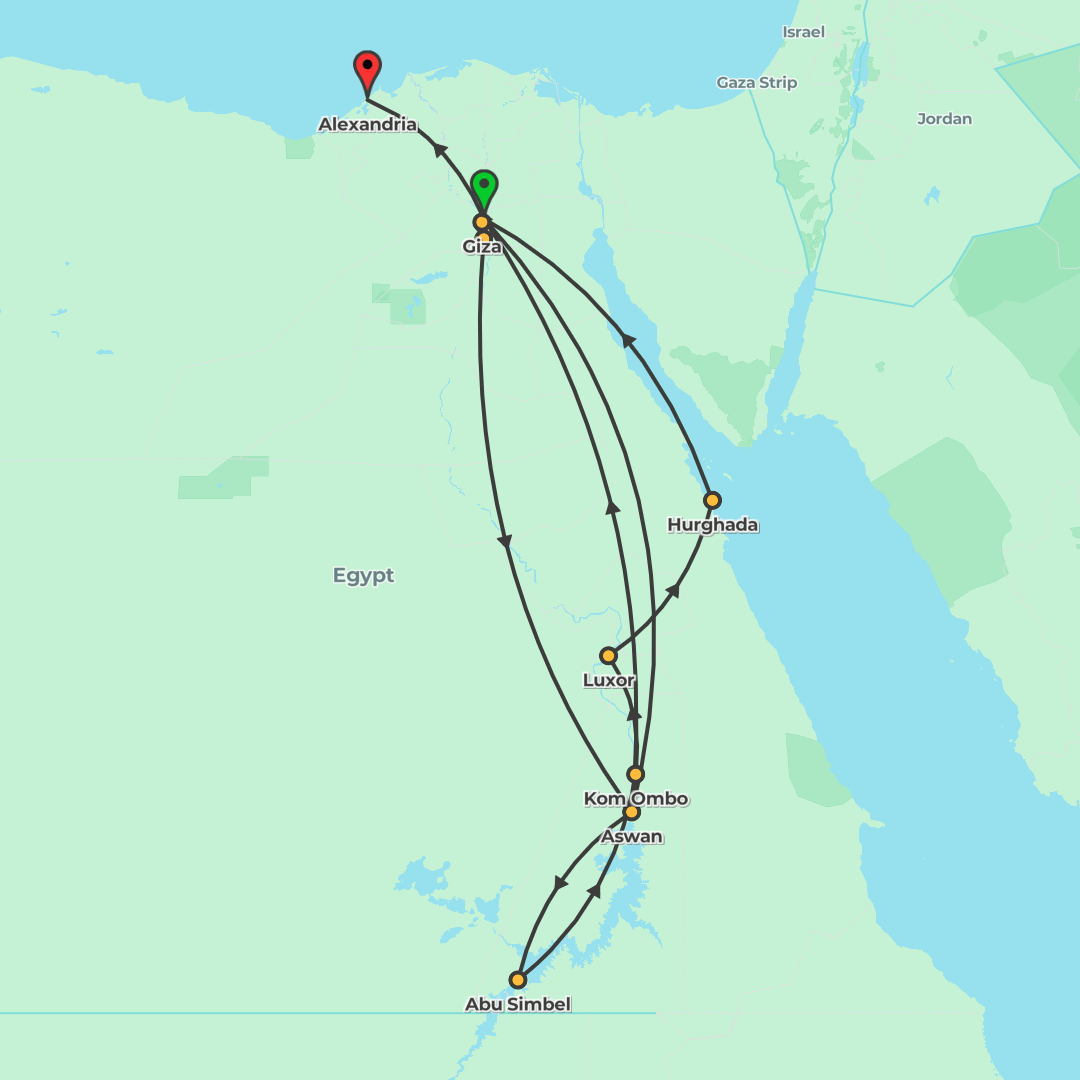 A 9-day small-group Egyptian adventure combining a four-night Nile cruise with expert-led visits in Cairo, Luxor and Aswan, plus included flights between Cairo, Luxor and Aswan.