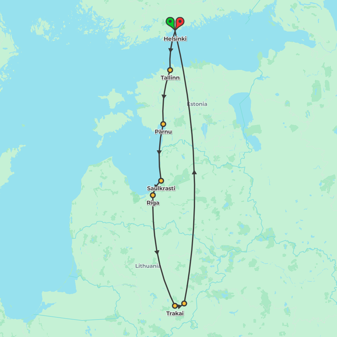 Discover Helsinki and the Baltic capitals on a 9-day tour featuring guided city walks, free time, a ferry to Tallinn, and stops in Pärnu, Saulkrasti and Trakai.