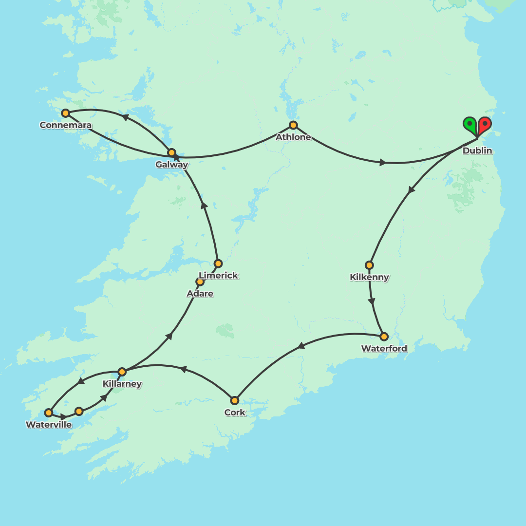 Discover Ireland on a 12-day guided journey from Dublin to Belfast, taking in celebrated highlights from the Book of Kells and the Ring of Kerry to the Cliffs of Moher and the Giant’s Causeway.