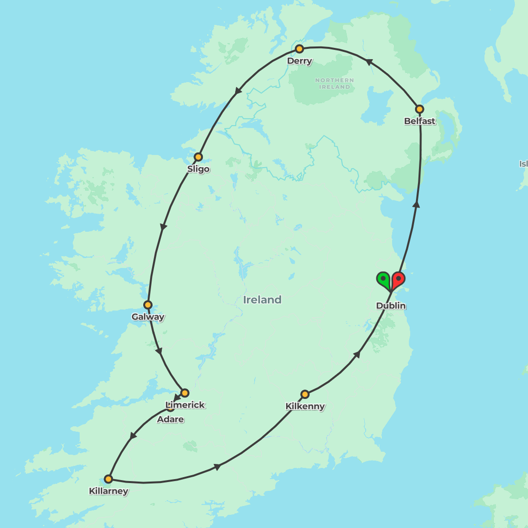 Explore Ireland’s treasures on a guided loop from Dublin, uncovering vibrant cities, scenic peninsulas and iconic landmarks in a short, highlight-packed escape.
