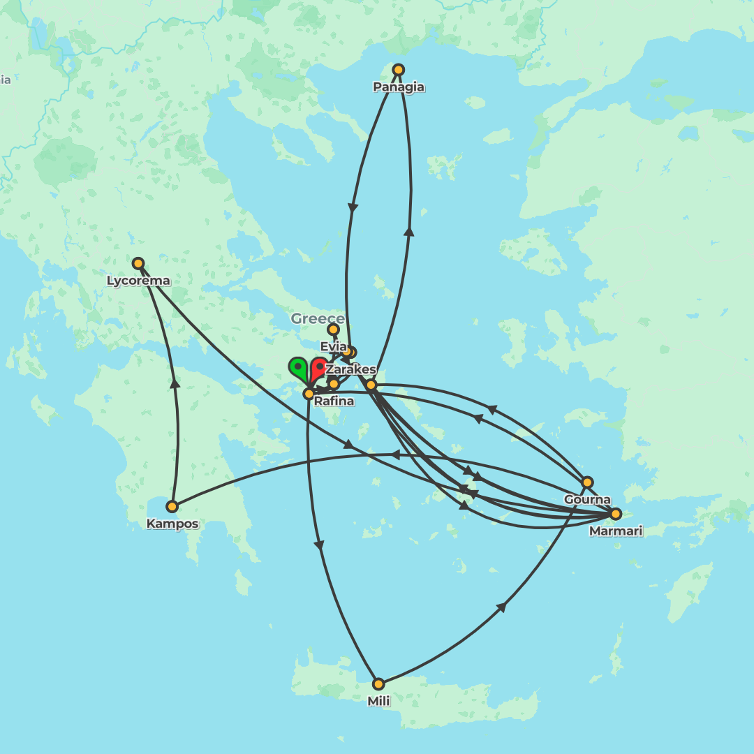 Cruise the island of Evia aboard a traditional Greek caique, with swimming, snorkeling, and evenings in authentic waterside tavernas, starting and ending at Athens Airport.